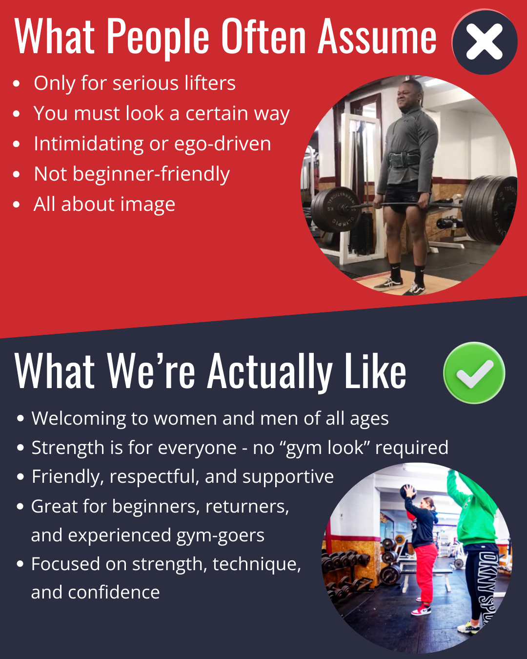 We’re not a big-chain gym. We’re a straightforward gym focused on what actually works - with no confusing contracts or intimidating vibes. Instead, you’ll find real iron weights, quality equipment, expert guidance, and a strong local community that makes everyone feel comfortable getting stronger, fitter, and more confident.